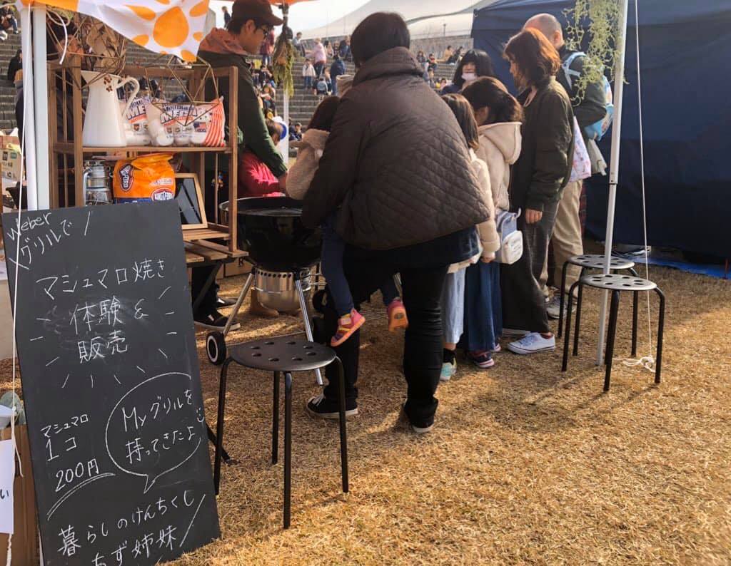 今回は、自前のBBQグリルを使ってマシュマロを焼く『体験&販売』をやってみました。
