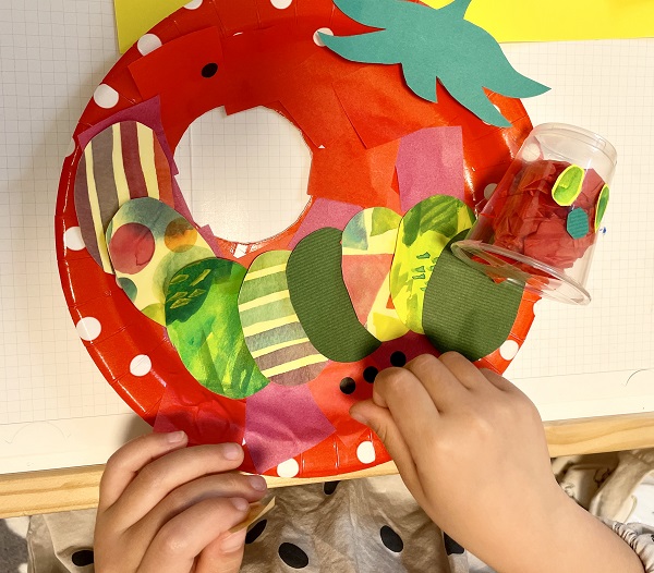それぞれ個性的なはらぺこあおむしと、かわいいイチゴが出来上がりました。