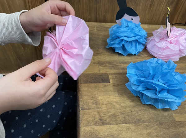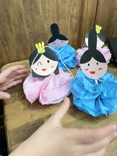 ひまわり工房の見守りコーナーでも、おひな様を製作して遊びました!