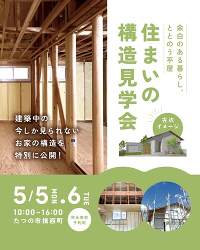 明日・明後日はたつの市にて構造見学会を開催いたします。