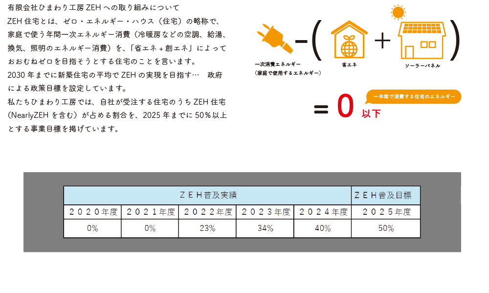私たちひまわり工房では、自社が受注する住宅のうちZEH