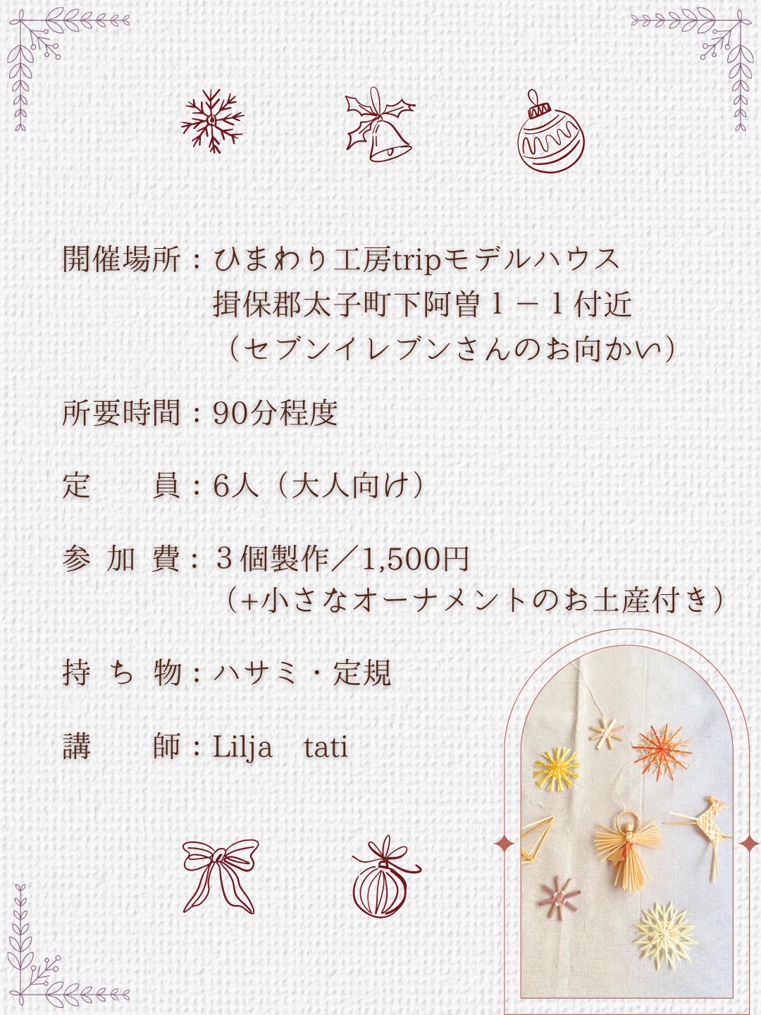 【11月30日ワンデイ開催】クリスマスオーナメントづくり 予約スタート!