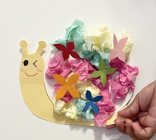 見守りスペースでは、この時期ぴったりのあじさいカタツムリを作りました!