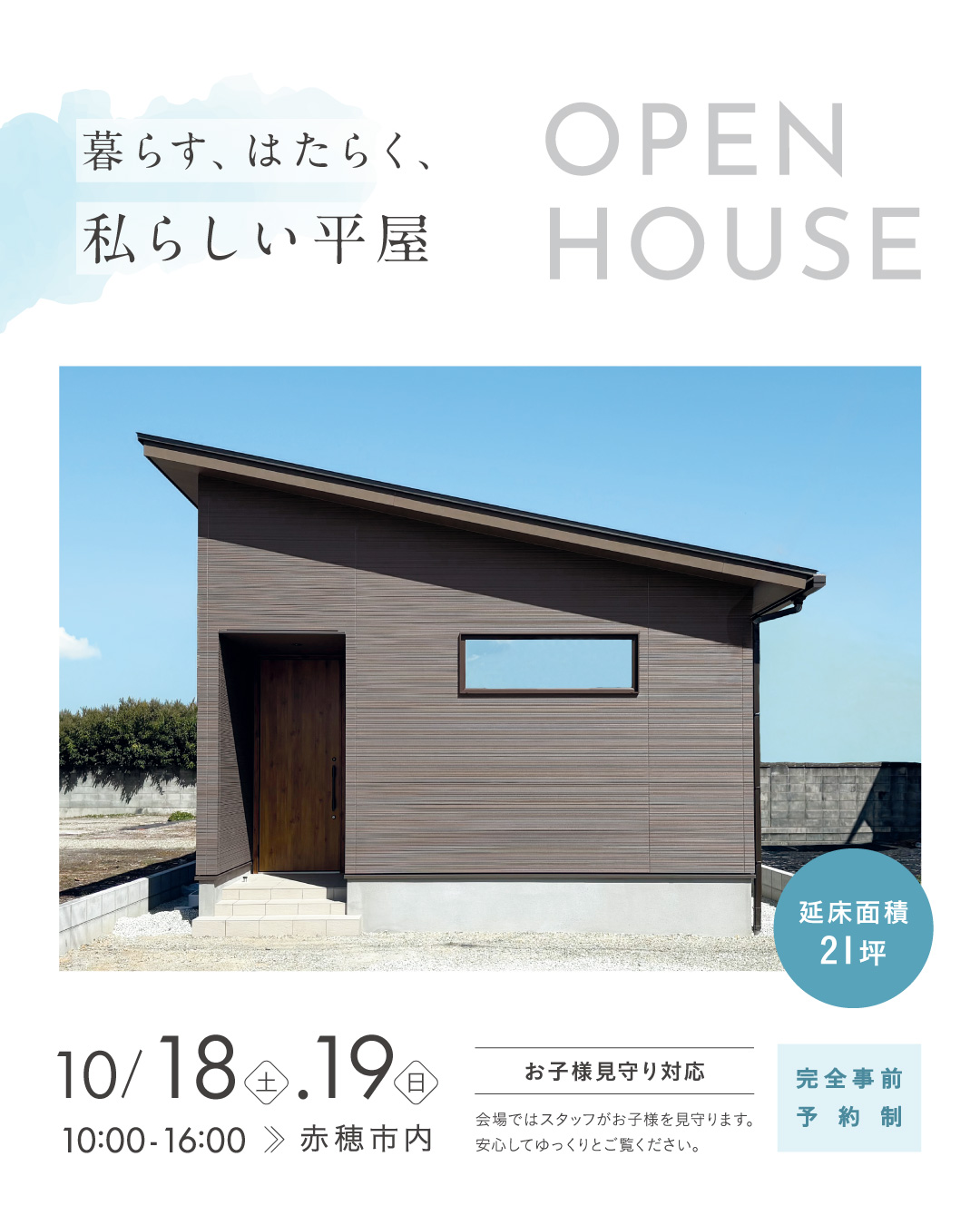 【10月予約制完成見学会】暮らす、はたらく、私らしい平屋