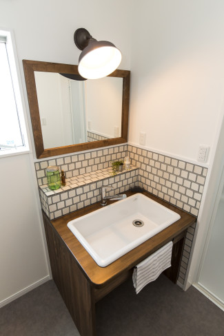 毎日の掃除って億劫になりがちですが、水回りがタイルになっているので掃除も楽チンです。サッと拭き取るだけで汚れも取れるし、木材に汚れがしみちゃって取れなくなることも無いので手軽に掃除が出来ます。